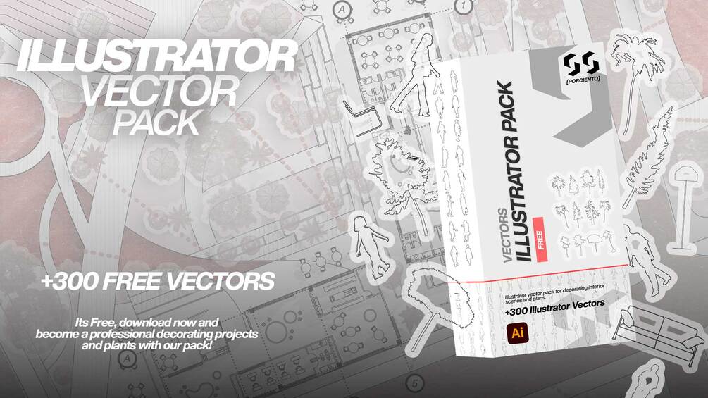 You get 300+ fully vectorized, editable and professional resources: furniture, trees, people silhouettes, cars, textures, urban elements, vegetation and more — all organized and plug-and-play.