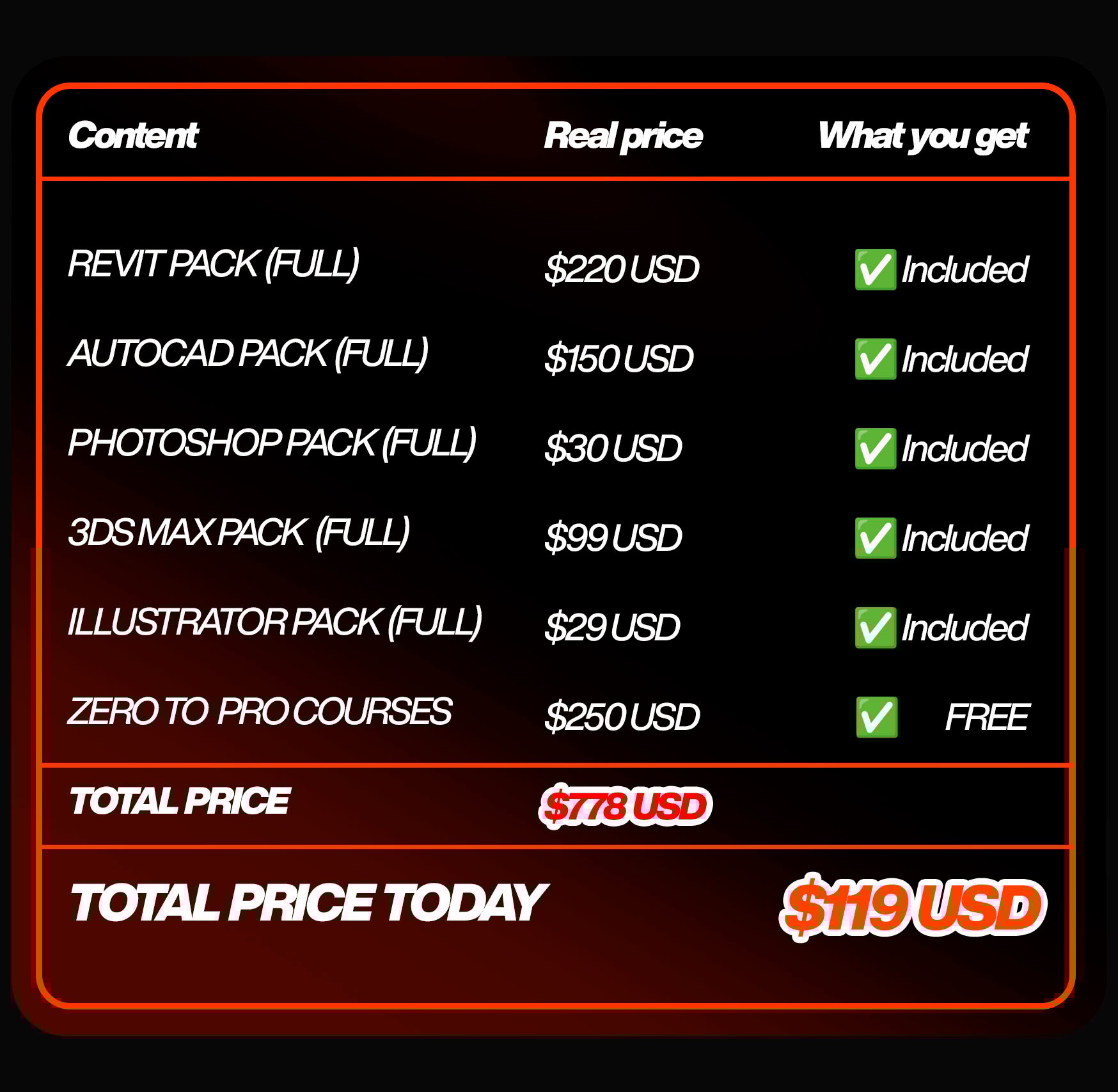 Mega Pack Pro Architect ᴇɴ99Porciento20 ratingsVersión en español aquí 🡥$119119usd- 77% OFFOnly 12 spots left with this price.$520520usdOriginal Price Unlimited Quantities2119usdAdd to cartPay in 2 installments2 equal monthly installments of $59.5075 salesYou´ll get: Architecture Mega packSize1.56 MBLength2 pagesAdd to wishlist New wishlistShareShare on XShare on Facebook Copy linkCopy product URL7-day money back guaranteeRatings4.9(20 ratings)204.95 stars90%4 stars5%3 stars5%2 stars0%1 star0%
