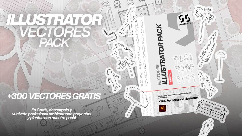 Hemos vectorizado más de 300 recursos profesionales listos para usar: mobiliario, árboles, siluetas humanas, texturas, automóviles, elementos urbanos, vegetación y mucho más.
